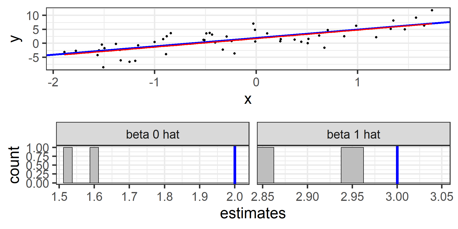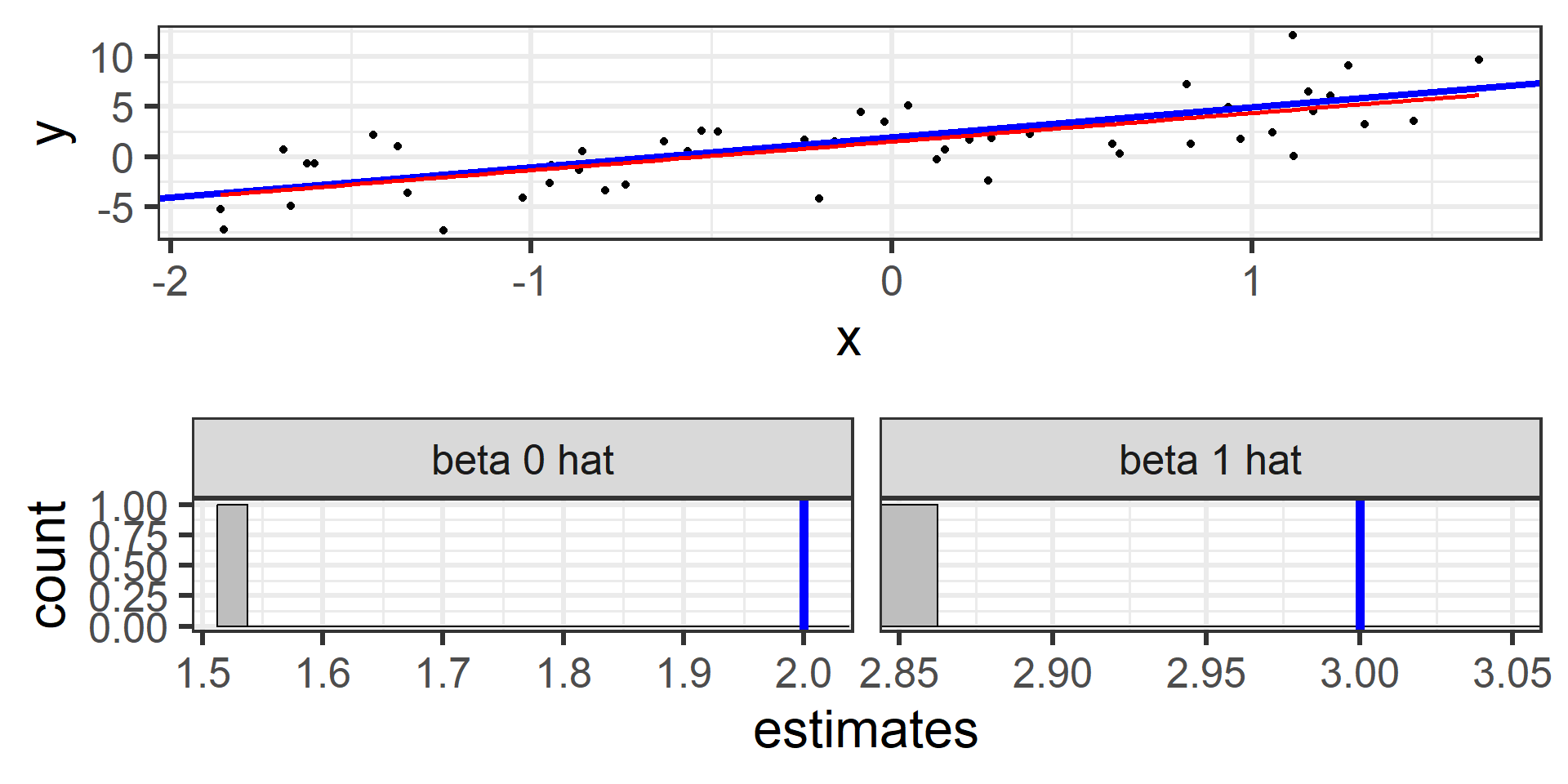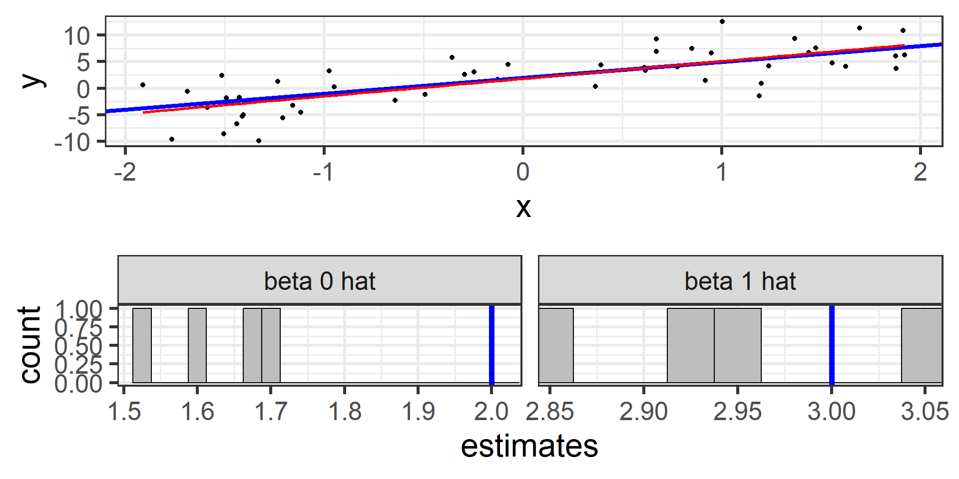 What we just saw was the sampling distribution of \(\hat{\beta}_0\) and \(\hat{\beta}_1\).